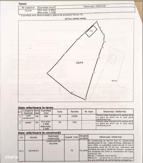 proprietate se afla o casa traditionala din chirpici, compusa din 3 incaperi, ce poate fi renovata sau valorificata in cadrul unui nou proiect.Terenul este bogat in vegetatie matura si pomi fructiferi: nuci, pruni, mar, precum si liliac, soc si alti arbori, oferind un cadru natural placut si umbra generoasa.Utilitati si facilitati:Bransament electric existentCamin din beton pregatit pentru racordarea la apaConducta de apa trece chiar prin fata proprietatiiFantana proprie, ideala pentru irigareO proprietate cu potential, potrivita pentru cei care isi doresc liniste, spatiu si natura, fara a renunta la avantajele unei locatii centrale.