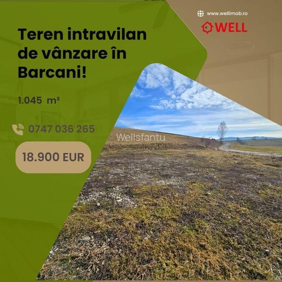 Teren intravilan de vânzare situat în Barcani, la aproximativ 5 minute de Primăria comunei. Proprietatea are acces la electricitate, apă și canalizare, iar drumul de acces este asfaltat.