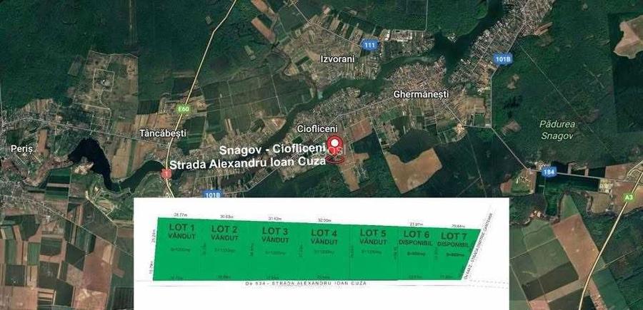 Vanzare lot teren 1600mp In Ciofliceni Snagov. Terenul are o deschidere de 40 ml la strada asfaltata si beneficiaza de toate utilitatile (electricitate, gaz, apa) si este situat intr-o zona inconjurata de padure ideala pentru constructia unei locuinte sau investitie. Este orientat din punct de vedere cardinal spre sud. Face parte dintr un viitor ansamblu rezidential ce urmeaza a fi construit. Foarte important : NU EXISTA DRUM DE SERVIUTUTE!!! Terenul are acces direct la Strada Voievod Monumorut nr 36. Oferim comision pentru agentiile imobiliare care doresc sa intermedieze aceasta proprietate!!!