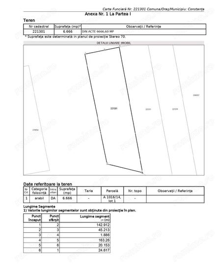 Va propunem spre vanzare un teren intravilan in suprafa?a de 6666 mp, in spatele Fabricii de Ulei din Constan?a, cu doua deschideri la doua drumuri de exploatare (44.76 ml la D.e.1012 ?i 45.22 ml la D.e. 1019). Accesul se poate face facil din strada Depozitelor. Terenul nu este imprejmuit ?i se afla intr-o zona industriala cu poten?ial de dezvoltare, in vecinatatea mai multor sedii de firme (Tracon, CT Bus, Celco, ABC Val, Covatin, BF Auto Service). Toate utilita?ile (apa, curent, gaze, canalizare) sunt in imediata apropiere. Conform PUZ, se vor respecta urmatoarele cerin?e urbanistice prevazute in Certificatul de Urbanism de Informare: - regim de inal?ime maxim = 20 m, -POTmaxim = 50%, - CUTmaxim = 10 mc/mp. Terenul estei ideal pentru hale industriale, depozite, service auto, garaje, centre comerciale en-gross, produc?ie etc. Suna ACUM pentru stabilirea unei vizionari! ID anun? : 1749736904