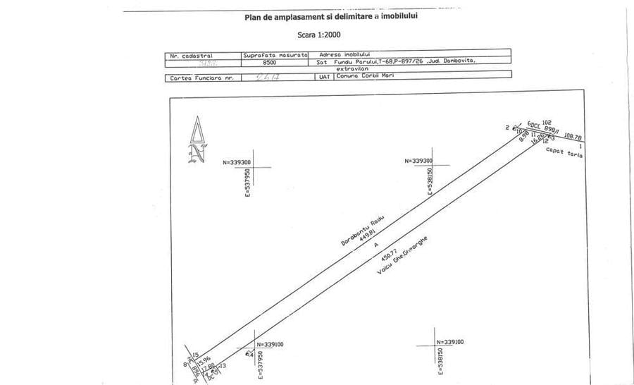 Terenul intravilan are o suprafata de 8500 mp cu o deschidere de 25.24 m la DN61 si in capatul opus 17.6 m. Locatia este la maxim 30 de minute de la iesirea din Bucuresti pe autostrada A1 spre Pitesti, la km 50, in localitatea Corbii Mari pe DN 61. Date de contact: Iuliu Dima ID anun? : 1570272698