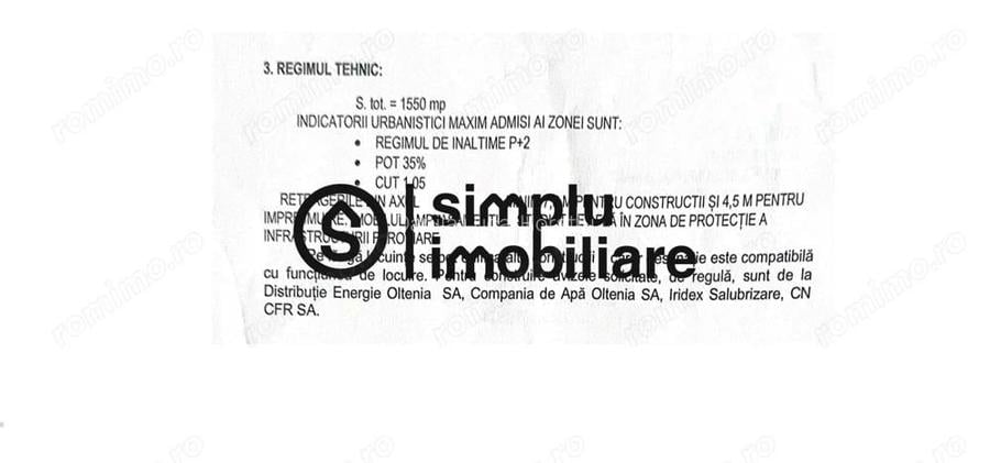 SIMPLU Imobiliare va propune spre achizitionare un teren intravilan situat in cartierul Veteranilor. - 1550 MP - Deschidere la 2 strazi - Deschidere de 70 M si 57 M - Utilitati : apa, curent ( gazele si canalizarea sunt in zona ) - POT: 35% - CUT: 1.05 - Regim Inaltime : P+2 - Ideal pentru constructori ! Totul este mai SIMPLU cu noi ! ID anun? : 1761814640