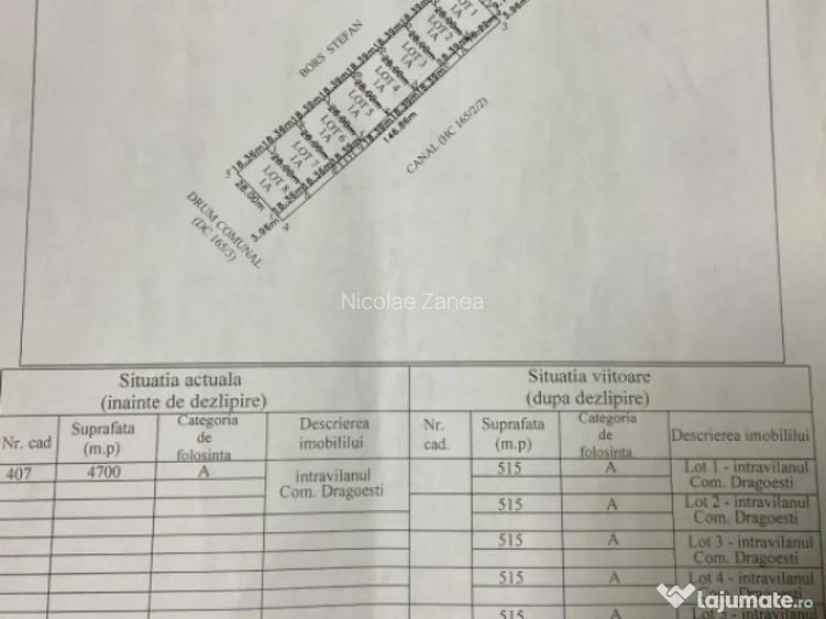 Teren intravilan 4.700 mp parcelat in loturi de 500 mp lang