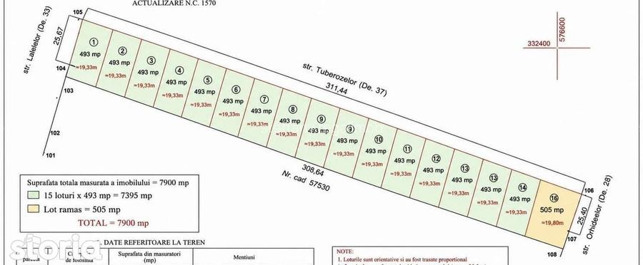 Echipa Steffany Regal Imob va propune spre vanzare Loturi de teren in suprafata de 493 mp cu o latime de 19.33ml si o adancime de 25.40,l. Disponilile 11 loturi . Utilitati la 300m distanta de locatie . Pretabil investitie . Lotul 1 , 2, 14,15 si 16 sunt vandute