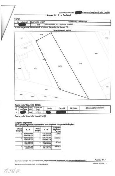 De vanzare teren intravilan cu deschidere la drumul principal si utilitati in proximitate Suprafata: 2595mp Categoria teren: intravilan Pret total negociabil: 42000 EUR Descriere:Vand teren intravilan cu suprafata de 2595 mp in localitatea Bogata Olteana com Hoghiz Judetul Brasov. Accesul este pe drum asfaltat din DN13 (E60) prin Dj 131D la intrare in satul Bogata Olteana. Terenul are numar administrativ (Numar de casa) si doua deschideri cu access direct la drum , una de 43.5m la drumul principal Dj 131D si una de 78,3m la drum de exploatare. Terenul este imprejmuit si securizat, in prezent livada tanara pe rod cu 93 pomi fructiferi (pruni, peri, meri, ciresi, piersici, nectarini, aluni, un rand plantatie mure si un rand plantatie zmeura). Reteaua de apa curenta si curent electric sunt la limita terenului la deschiderea spre drumul principal Dj131D. Localitatea: Bogata Olteana com Hoghiz jud Brasov Vanzator: proprietar
