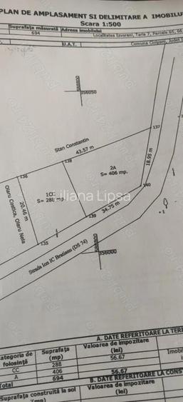 Izvorani, va prezentam spre vanzare un teren in Ciolpani sat Izvorani in suprafata de 700 metri pe strada Vintila Bratianu, are forma de trapez, deschidere stradala peste 50 metri, utilitatile sunt in fata portii ( canalizare, gaz, curent ), curtea are doua porti mari ( poate intra camionul ), gardul este pe fundatie din beton pe spalieri metalici, curtea este curata cu un singur nuc mare !! Este la 2 km din DN1 si la aprox 500 m de Castel Film si-sau de COR. Comision 3% ID anun? : 1760810055