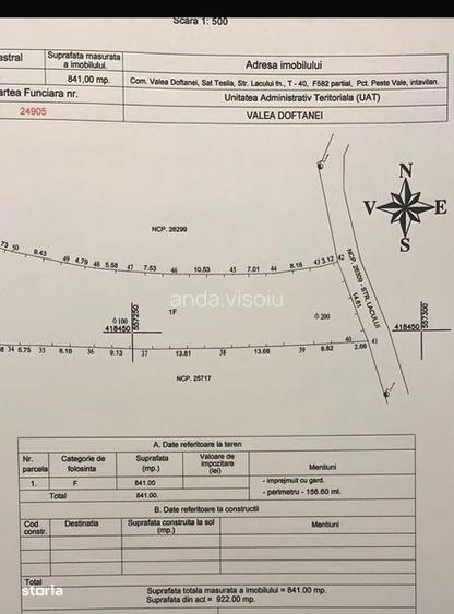 vand teren in Valea Doftanei , cu vedere frumoasa la lacul Paltinu ,suprafata 841 mp cu deschidere 14.8