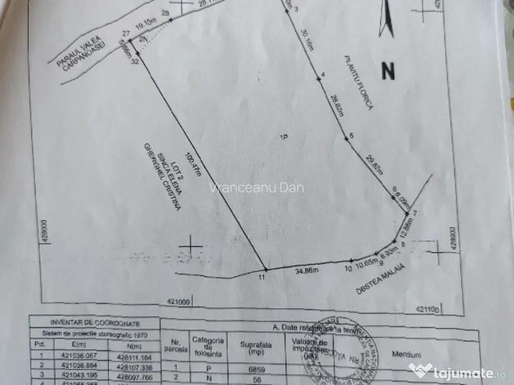 Vand doua parcele 6915m2 fiecare,impreuna sau separat.Teren intravilan,acte la zi ,marginit de paraul Carpanoasa,acces drum pietruit din DN7,posibilitate curent.Pret 5euro m2 negociabil.Atasez schite si poze.Pentru contact