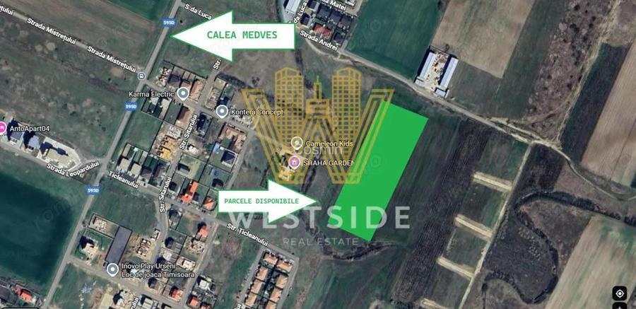 WESTSIDE IMOBILIARE Oportunitate unica Terenuri de vanzare in Mo?ni?a Noua, Calea Medve? Westside Imobiliare va propune spre vanzare terenuri intravilane situate intr-una dintre cele mai cautate zone reziden?iale din proximitatea Timi?oarei Mo?ni?a Noua, pe Calea Medve?. Detalii terenuri Suprafa?a parcele: intre 560 714 mp Pre?: 110 /mp Intre firme NU se aplica TVA Avantaje & utilita?i Parcelele beneficiaza de o pozi?ionare excelenta, fiind situate foarte aproape de drumul principal ?i vor dispune de: Canalizare Apa Gaz Curent Iluminat stradal Acces direct la asfalt De ce sa alegi acum? Pre?urile actuale sunt foarte avantajoase in raport cu poten?ialul zonei Mo?ni?a Noua este una dintre cele mai dinamice ?i atractive zone pentru dezvoltari reziden?iale Investi?ie sigura, cu posibilitate de cre?tere rapida a valorii terenului odata cu dezvoltarea completa a zonei O ocazie excelenta pentru investi?ie sau construc?ia unei locuin?e moderne intr-o zona de top! ID anun? : 1756890045