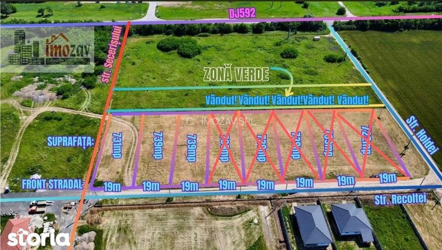 !!!5 VANDUTE-3 RAMASE!!!Firma Imozav ofera spre vanzare 8 parcele de teren intravilan, ideale pentru constructia de locuinte individuale sau duplexuri, situate intr-o zona in plina dezvoltare din Mosnita Noua.Utilitati pe parcela: CurentUtilitati peste drum (NECESITA RACORDARE!) Apa Canalizare Gaz Detalii parcele: Suprafete: 731 mp, 722 mp si 739 mp (restul de 6) Front stradal: 19m pentru fiecare parcela Pret: 65.000 EUR / parcela Localizare excelenta:Situate pe strada Recoltei, parcelele beneficiaza de: Acces facil la DJ 592, drumul judetean modernizat la 4 benzi, care leaga Timisoara de Mosnita Noua, asigurand un trafic fluent si sigur Proximitate fata de Mosnita Noua, unde se gasesc toate facilitatile necesare: complexuri comerciale, scoli, gradinite si alte servicii esentiale Acces rapid catre AlbinaOportunitate de investitie: Aceasta oferta reprezinta o oportunitate excelenta pentru cei care doresc sa construiasca o locuinta intr-o zona linistita, dar bine conectata la facilitatile urbane, sau pentru investitori interesati de dezvoltarea unor proiecte rezidentiale intr-o comunitate in expansiune.Contactati-ne pentru mai multe detalii sau o vizita la locatie