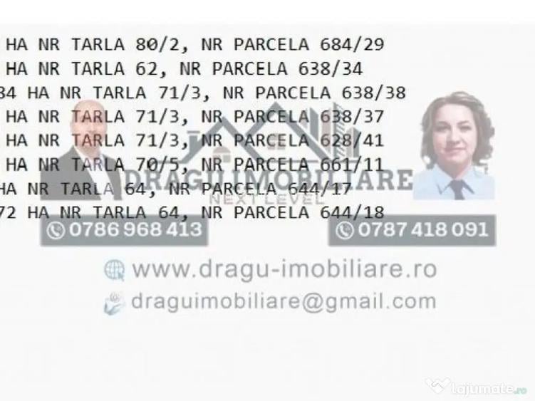 Pentru claritate si transparenta, sunt publicate suprafetele exacte, tarlalele si parcelele aferente terenurilor agricole situate in extravilanul comunei Munteni. Terenurile sunt potrivite in special pentru agricultori din zona, fiind amplasate astfel incat se pot lucra usor. Desi unele dintre ele au carti funciare diferite, in practica sunt alaturate sau aflate in imediata apropiere, ceea ce le face oarecum comasate din punct de vedere al exploatarii agricole. Suprafate si identificare cadastrala: 0,80 ha tarla 80/2, parcela 684/29 0,50 ha tarla 62, parcela 638/34 1,5284 ha tarla 71/3, parcela 638/38 0,53 ha tarla 71/3, parcela 638/37 0,41 ha tarla 71/3, parcela 628/41 1,57 ha tarla 70/5, parcela 661/11 0,19 ha tarla 64, parcela 644/17 2,1072 ha tarla 64, parcela 644/18 Terenurile sunt agricole, cu randament bun, motiv pentru care sunt prezentate detaliat prin tarla si parcela, informatii relevante pentru cei care cunosc zona si pot evalua corect pozitionarea si potentialul agricol. ???? Acte la zi, situatie juridica clara. ???? Localizare cunoscuta, specifica exploatarii agricole din comuna Munteni.