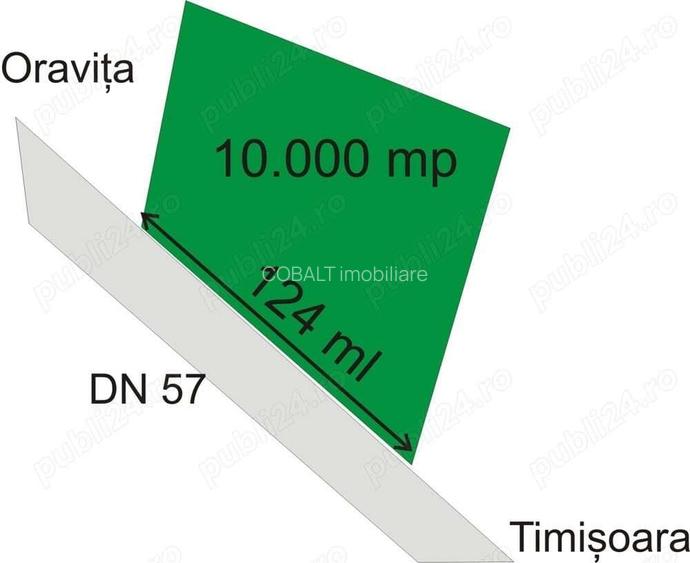 Suprafa?a: 10,000 mp, extravilan Front Stradal: 124 ml Localizare: situat pe DN 57 Oravi?a - Timi?oara., la aproximativ 2 km de Oravi?a, Va oferim spre vanzare un teren deosebit, ideal pentru diverse proiecte, datorita amplasarii sale strategice. Cu un front generos de 124 ml la ?osea, acest teren are un poten?ial enorm pentru dezvoltare. Curentul electric este disponibil in apropiere, ceea ce faciliteaza racordarea ?i dezvoltarea ulterioara. Pre?: 40,000 EURO Pentru mai multe detalii ?i pentru programarea unei vizionari, nu ezita?i sa ne contacta?i: Telefon: