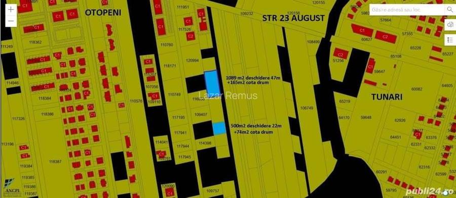 de vanzare sau chirie Teren intravilan str 23 august nr258T1 latime drum 7m 1254m2 si 576m2