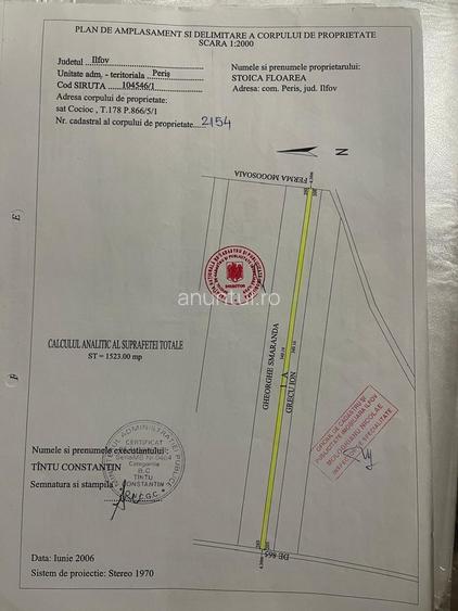 Vand teren intravilan arabil, case construite in vecinatate, in Peris, intrare din strada Stefan cel Mare pe strada Piersicariei. Terenul are 1500 mp total cu deschidere de 4,13 m.