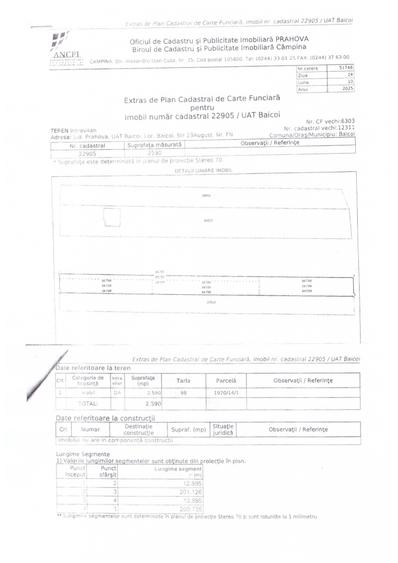 Proprietari vand in Baicoi -PH teren stradal lotizat (3 loturi+ drum servitute), situat pe str. 23 August in intravilanul orasului. S totala = 2590 mp deschidere 12,89 m terenul este plan, cu toate utilitatile la strada 23 August (asfaltata) Pret: 22 eur/ mp