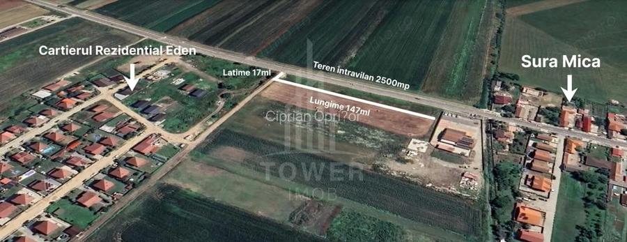 Teren oferit in exclusivitate de Tower Imob, ideal pentru dezvoltare, situat strategic la ie?irea din ?ura Mica spre Ocna Sibiului, chiar inainte de cartierul reziden?ial Eden. Proprietatea are acces direct din drum asfaltat ?i beneficiaza de toate utilita?ile in proximitate. Suprafa?a: 2.500 mp Dimensiuni: 147 m deschidere la strada Continuarea fireasca a dezvoltarii localita?ii Toate utilita?ile disponibile in imediata vecinatate Acces direct din drum asfaltat Pre?: 65 /mp (Total: 162.500 ) Exclusivitate Tower Imob ID anun? : 1751455834