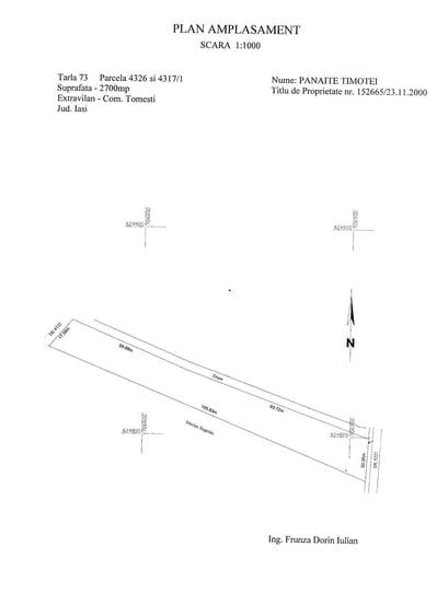 Vand 2700 m.p. teren ( intravilan 2492 m.p.+ extravilan 208 m.p.) actualmente vatra stupina in Goruni Iasi , imprejmuit 1000 m.p. , capatul vestic al terenului da in padurea de salcami , cu sau fara stupi , lazi si cabanuta lemn pt. unelte odihna . Utilitati , curent electric si apa , pret 10 E m.p. intravilan discutabil . Tel. , suprafata totala: 2700, Front stradal: 20 ID anun? : 19724911