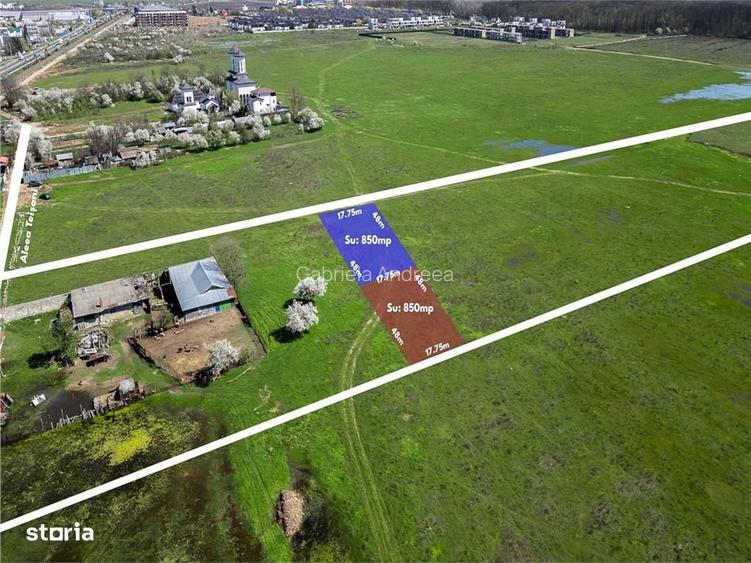 o suprafa?a de 852 mp ?i o deschidere generoasa de 17,75 m, spa?iul i?i ofera libertatea de a construi exact ceea ce i?i imaginezi: o casa moderna, un proiect reziden?ial sau o investi?ie cu poten?ial real de cre?tere.Imagineaza-?i dimine?ile incepute cu aer proaspat, plimbari prin padure la ca?iva pa?i de casa ?i serile lini?tite, departe de zgomotul ora?ului, dar suficient de aproape incat sa ajungi rapid oriunde ai nevoie. Zona este in plina dezvoltare, ceea ce inseamna ca investi?ia ta de astazi poate deveni valoarea de maine.Regimul urbanistic generos (POT 50%, CUT 2.2, regim de inal?ime P+6) deschide oportunita?i multiple fie ca visezi la un proiect personal sau la o dezvoltare cu randament ridicat.Utilita?ile sunt in apropiere, pregatite sa transforme acest teren dintr-un plan intr-o realitate.Aici nu cumperi doar un teren. Construie?ti un stil de via?a. Sau poate urmatoarea ta investi?ie de succes.Disponibile: 2 loturi alege-l pe cel care i?i inspira viitorul.Parametri urbanistici: POT: 50% CUT: 2.2 Regim de inal?ime: maxim P+6Aceste caracteristici fac terenul ideal atat pentru dezvoltatori imobiliari, cat ?i pentru investi?ii pe termen mediu ?i lung.Localizare ?i acces:Proprietatea este amplasata intr-o zona reziden?iala in plina dezvoltare, cu acces rapid catre puncte cheie: aproximativ 1,2 km pana la Bulevardul Pipera (circa 15 minute de mers pe jos) acces facil catre ?oseaua de Centura proximitate imediata fa?a de Padurea Baneasa, perfecta pentru relaxare ?i activita?i in aer liberUtilita?i:Terenul nu este inca racordat la utilita?i (apa, canalizare, gaz, energie electrica), insa acestea se afla in imediata apropiere, pe Aleea Tei?ani, facilitand racordarea rapida.Avantaje cheie: zona in dezvoltare accelerata deschidere optima pentru construc?ii eficiente regim urbanistic flexibil proximitate fa?a de natura ?i infrastructura urbana oportunitate excelenta de investi?ieDisponibilitate: Sunt disponibile doua loturi