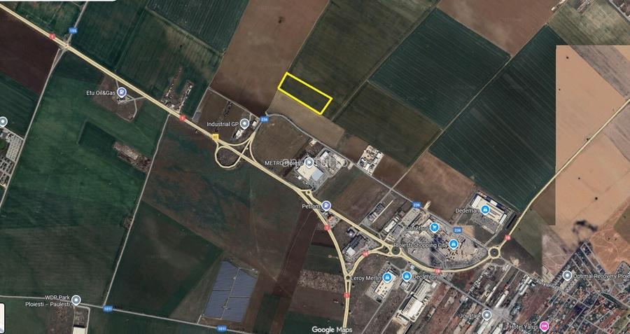 Eurocity Estate va propune spre vanzare un teren extravilan, situat in zona Metro Ploiesti, zona Paulesti, in suprafata de 39.144mp, cu dubla deschidere la 2 drumuri de 105ml si 360ml. Teren se afla in apropiere de DN1, de Metro Ploiesti si Moemax