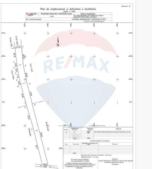 Teren intravilan 3.323 mp Valea Calugareasca, Prahova | investitie Va propun spre vanzare un teren intravilan cu suprafata de 3.323 mp, situat in Valea Calugareasca, judetul Prahova, intr-o zona linistita, cu acces facil catre Ploiesti si principalele puncte de interes din localitate. Terenul este potrivit pentru constructie rezidentiala (casa/vila), dezvoltare tip duplex/mini-cartier, sau ca investitie. Amplasamentul ofera un cadru placut si potential bun de valorificare, fiind o zona in dezvoltare. Puncte forte: Suprafata generoasa: 3.323 mp Teren intravilan (potrivit pentru construire, in functie de reglementarile urbanistice) Acces din drum asfaltat/pietruit Acte & informatii: Documentatie la zi. Pentru mai multe detalii, ma puteti contacta.