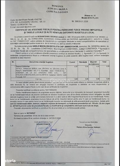 Proprietar, vand 11,5 hectare teren agricol comasat de foarte buna calitate (extravilan) in Zavoaia jud. BrailaTerenul este foarte bine pozitionat la iesire din Insuratei pe partea dreapta cu deschidere la soseaua nationala langa Centrul de colectare deseuri menajere.Exclus